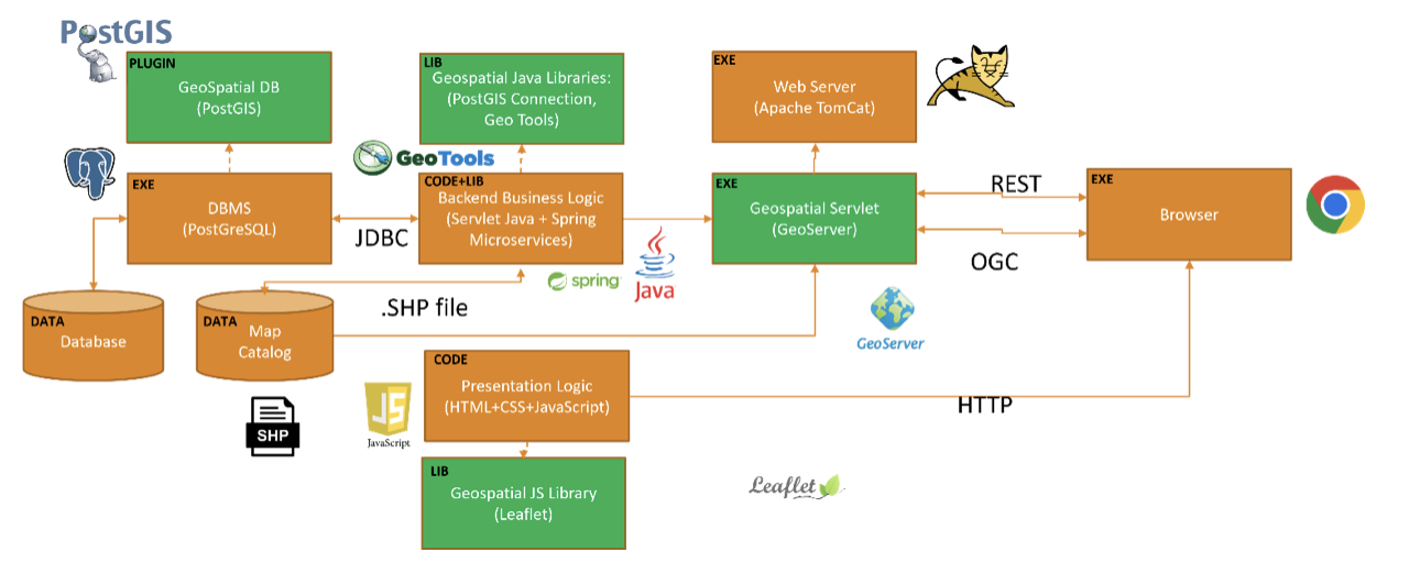 Nello specifico il presente documento effettua una survey tecnologica e presenta test di valutazione d’impiego per la seguente tecnologia: lo sviluppo di un front-end dinamico attraverso l’impiego di HTML, CSS e JavaScript per lo sviluppo della pagina web interattiva, la libreria Leaflet per la manipolazione di mappe e l’utilizzo di GeoServer su Apache TomCat per l’erogazione dei dati geospaziali.