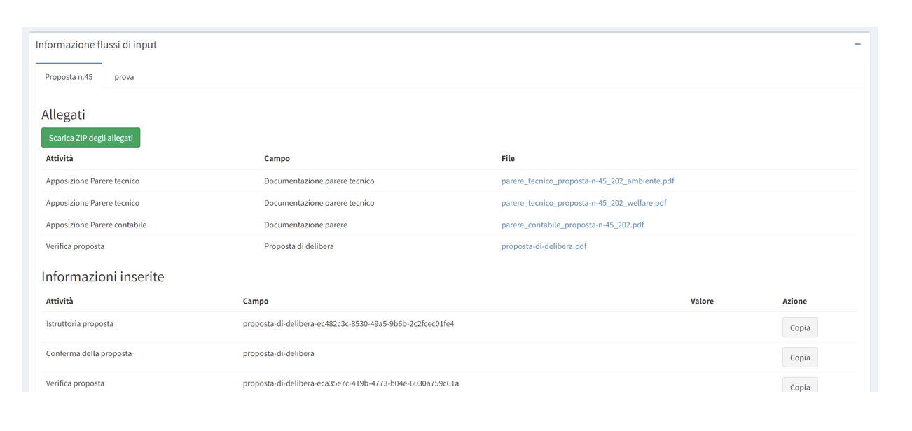 Per ogni flusso è possibile caricare e salvare una serie di file che permettono di conservare in formato elettronico la documentazione. Questi documenti elettronici, che possono contenere copie del progetto, disegni o documenti in genere sono collegati alla pratica e possono essere estratti e riprodotti in qualsiasi momento dagli operatori autorizzati.
